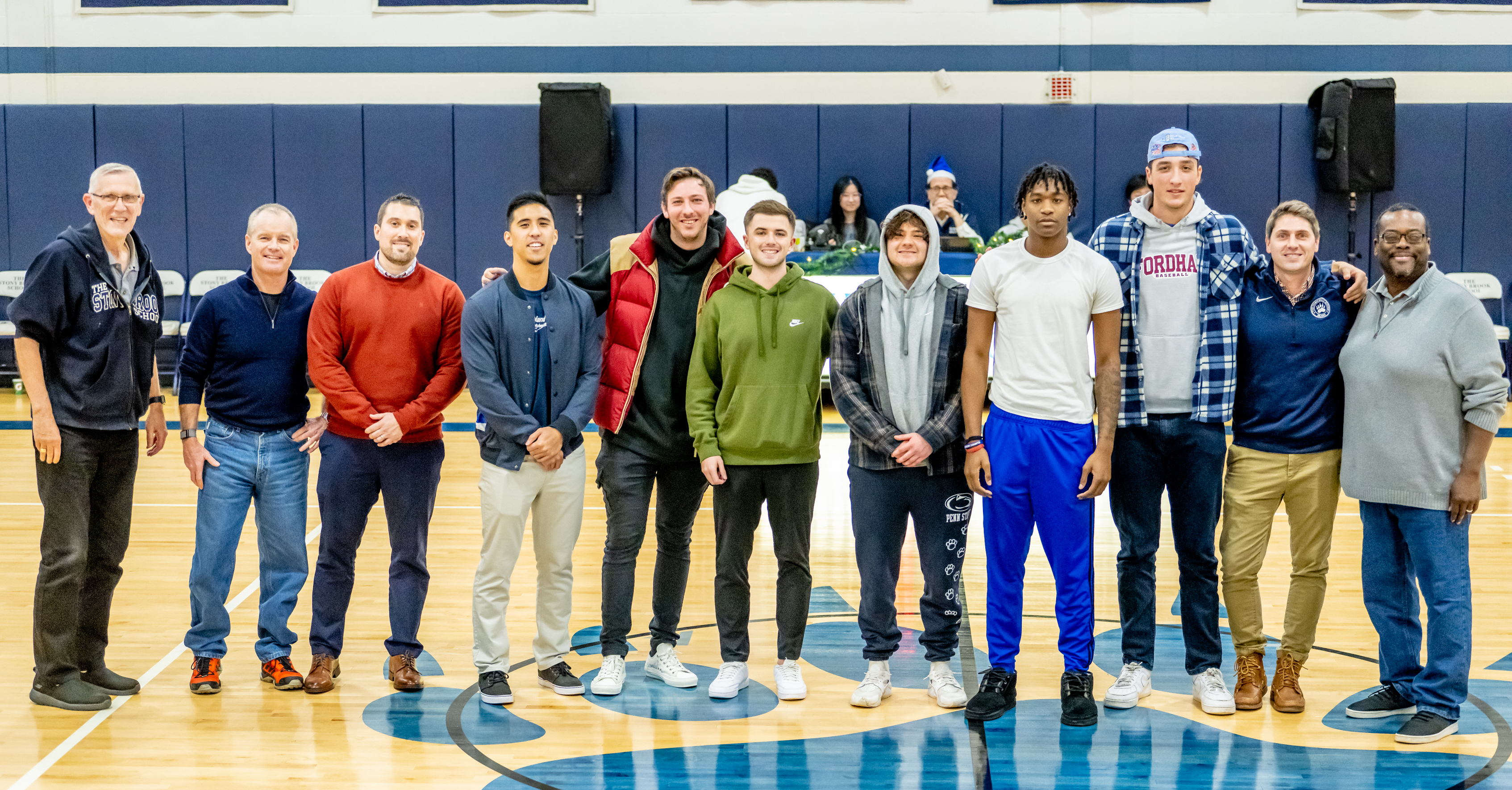 In the last home game before Christmas, the boys’ basketball team hosted an alumni night. Pictured above left to right: Coach Thom Brownworth, Wally Henry ’82, Josh Shteierman ’01, Marco Masakayan ’13, Andre Bruno ’13, Luke Meyer ’15, Nick Liberatore ’19, CJ Edwards ’22, TJ Wachter ’21, Dan Hickey ’04 & Joe Alexander ’87.