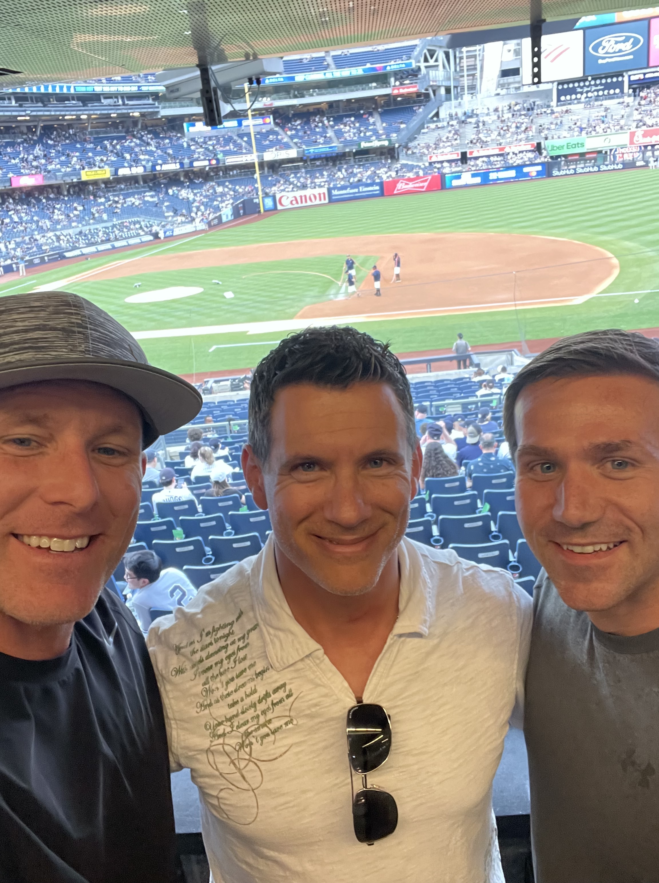 Pete Grimm ’99, Anthony Passalacqua ’99, and Chris Atkinson ’00 met up for a Yankees game over the summer.
